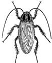 | 湯沸室内で図に示すゴキブリが捕獲された。このゴキブリの生態等に関する次の記述のうち、最も適当なものはどれか。 なお、このゴキブリ(成虫)の体長は約 12mm。 前胸背板にある 2本の縦長で太いハの字形に見える斑紋以外は、全体に黄褐色であった。 |